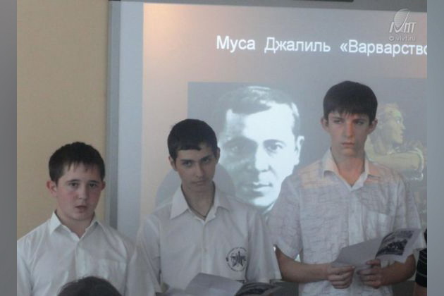 Учащиеся первого курса подготовили обширный материал по истории военных лет, проиллюстрированный кадрами хроники и носящий яркую антифашистскую направленность.